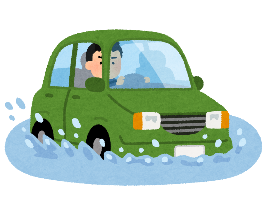 冠水した道路を走る自動車のイラスト かわいいフリー素材集 いらすとや